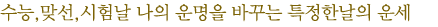 ƯÁ¤Àϳ¯ÀÇ ¿î¼¼ ¼ö´É³¯, ¸Â¼±³¯, ½ÃÇ賯µî°ú °°Àº ÀλýÀÇ Æ¯Á¤ÇÑ ³¯ÀÇ ¿î¼¼¸¦ ¹Ì¸® ¤¾î Ç®ÀÌÇÏ´Â ÀÏÀϿ